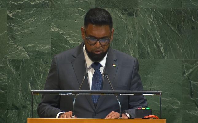 The Guyanese leader listed what he described as existential threats, including the "genocide in Palestine, annexation of Ukrainian territory, persecution of women in Afghanistan, humanitarian catastrophe in Sudan, brutal gang violence in Haiti, increased transnational organized crime, trafficking and illegal migration”.