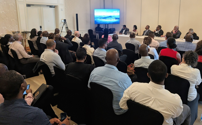 The session, held at the Four Seasons Resort conference room, drew approximately 40 participants from both islands’ business and banking sectors. Those attending included CIC President Mr. Trevor Blake, Head of the Nevis Branch Mr. Stephen Hector, and President of the Bankers Association and Republic Bank St. Kitts Country Manager Mrs. Pamela Herbert-Daniel.