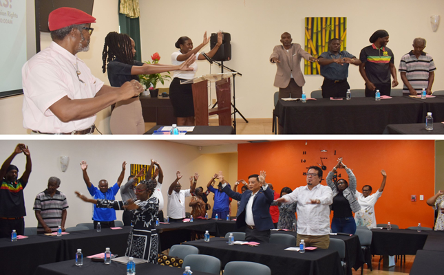 Two opposition political parties in St. Kitts, the Peoples Labour Party (PLP), and the People’s Action Movement (PAM) sent representatives. PLP was represented by its Deputy Leader Mr Dameon Lawrence, and the Chairperson of PLP in Constituency Number Two, Mr Marlon Brown, while PAM was represented by its candidate for Constituency Number Two, Mr Nubian Greaux.