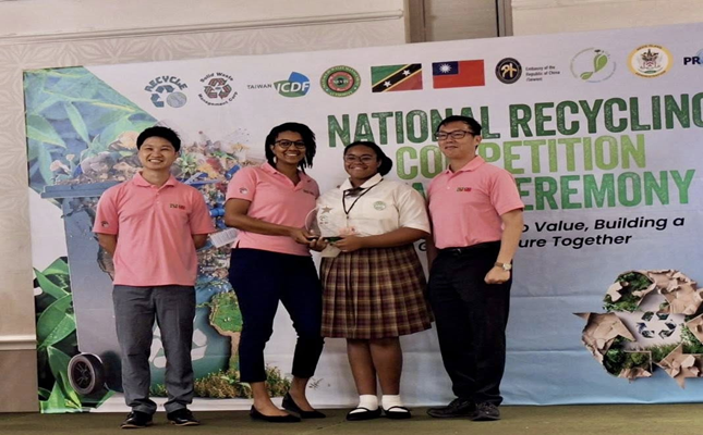 November 24th, 2025 -- The Taiwan Technical Mission to St. Kitts and Nevis held the 2025 National Recycling Competition Award Ceremony on the morning of November 24 at the Marriott Beach Resort. The event was organized by Ms. Joyce Chang, Manager of the Technical Mission’s Solid Waste Management and Recycling Project, in close collaboration with the environmental and education authorities of St. Kitts and Nevis, as well as the international environmental organization PROMAR.