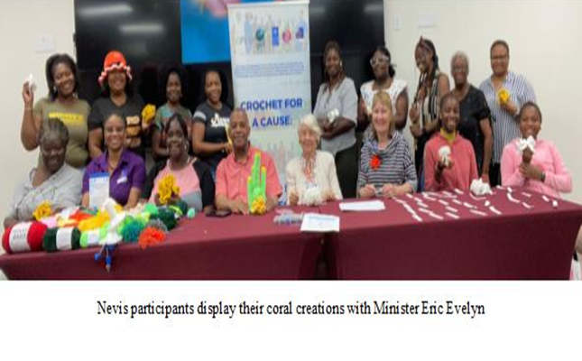 December 3rd, 2025 -- The Global Environment Facility (GEF) Small Grants Programme of the United Nations Development Programme (UNDP) hosted the Crochet for a Cause: Ridge to Reef project on Thursday 27 November at the NEMA Conference Room in Basseterre and continued the programme on Saturday 29 November at the Nevis Disaster Management Department in Charlestown. Forty participants created more than one hundred crocheted replicas of the marine environment for environmental awareness and conservation.