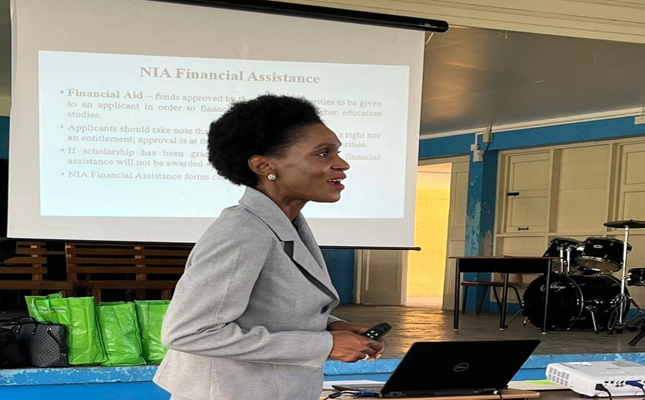 The Ministry of Human Resources in the Nevis Island Administration conducted a series of scholarship and financial assistance information sessions with the fifth and sixth formers of the Gingerland Secondary, Charlestown Secondary, and Nevis International Secondary schools as well as the Nevis Sixth Form College.