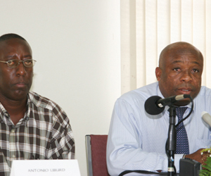 (L-R) Mr. Antonyo Liburd Executive Director of the Culturama Secretariat and the Hon. Hensley Daniel Minister responsible for Culture in Nevis. |