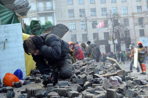 (Kiev, UKR) - In normal times, Grushevsky Street is one of the nicest avenues in Ukraine's capital Kiev. But now its cobble stones have been ripped out by demonstrators to use as weapons in their standoff with police.