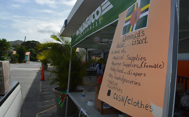 During the weekend, volunteers stationed at local supermarkets received donations of food and clothes from residents. Spearheading the relief efforts in the BVI is Ms. Nelcia St. Jean who is very appreciative of the support from NAGICO Insurances, other agencies and volunteers. She said the items received will be shipped to Dominica this week.